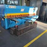 Hydraulische Tafelschere ATLANTIC ATS 306, SN A 10105, Baujahr 1988, Hydraulische Schlagschere, Schnittleistung 6 x 3.050 mm, Spannung 380V, Bedienpanel mit Start/Stop, Hinteranschlag motorisch