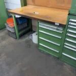 Werkbank GARANT mit Werkzeugschubladenschrank, mit Inhalt, Holzarbeitsplatte, Maße(LxBxH): 150x72x88cm, rechts Werkzeugschubladenschrank mit 8 Schubladen, Rückwand aus Holz