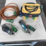 Konvolut Elektrowerkzeuge u.a.: 2x Bosch Geradschleifer 1x Baustromverteiler, Verlängerungskabel (orange)