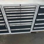 Werkzeugschubladenschrank LISTA, 9 Schübe, mit Inhalt (Stufenbohrer, Reduzierhülsen, Austreibkeile), Maße(LxBxH): 71x71x100cm