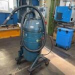 RINGLER Industriesauger / Ölsauger RINGLER, blauer zylindrischer Behälter auf Rollgestell mit Lenkrollen, Saugschlauch, Absaugschlauch oben