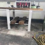 Werkbank mit Holzplatte und Stahlgestell