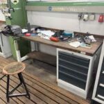 Werkbank mit Metallunterbau, mit Inhalt