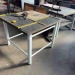 Werkbank mit Stahlgestell, quadratisch