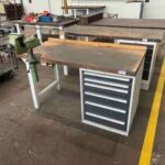 Werkbank mit Werkzeugschubladenschrank und Schraubstock, mit Inhalt