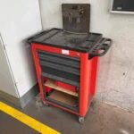 Werkstattwagen rot/schwarz, mit Inhalt, Maße(LxBxH): 88x44x96cm, 4 Schubladen oben., offenes Fach unten, 2 Lenkrollen